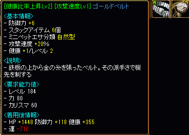 物資は、よくWIZが使用していた健康比率攻撃速度腰