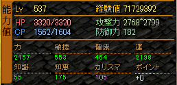 GVでは、 力1600、敏捷800、運1600ぐらいです