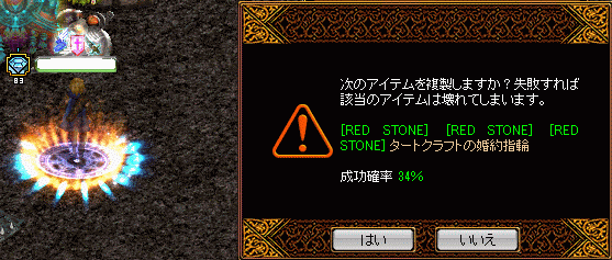 | No | 日付 | 職業 | アイテム | 成功/失敗 |